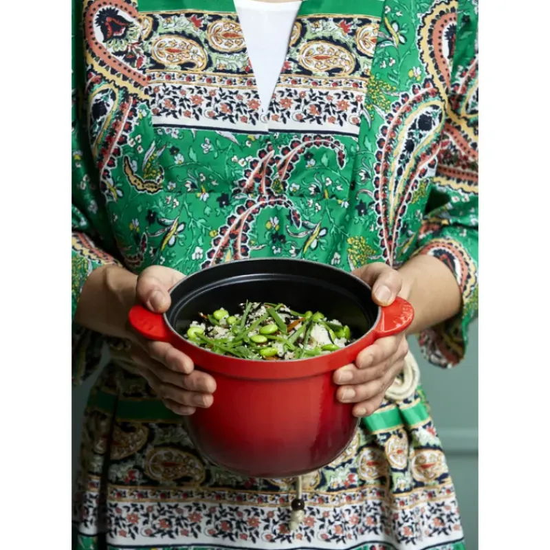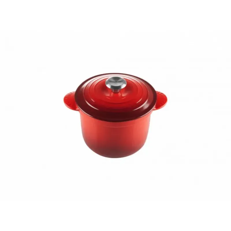 La cocotte en fonte Every Le Creuset est robuste (garantie à vie) son intérieur en émail noir mat vous assure résistance dans le temps et aux rayures. La cocotte haute rouge cerise est munie de deux couvercles : un couvercle bombé en fonte et un couvercle intérieur anti-débordement en céramique. Ce dernier est muni de deux perforations assurant ainsi l’évacuation de la vapeur et la bonne hydratation lors de la cuisson pour des aliments savoureux et tendres.