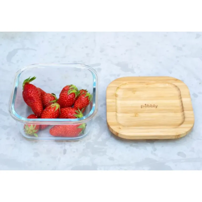 Boîte de Conservation en Verre et Bambou Carré 520 ml Pebbly
