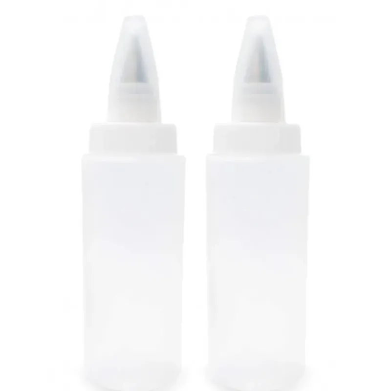 Envie d’un glaçage précis et raffiné simplement ? Optez pour ce lot de 2 flacons verseurs souples + 2 douilles à glaçage ScrapCooking. Les flacons verseurs plus communément appelés squeezer sont fabriqués en plastique souple permettant ainsi une manipulation facile. D’une contenance de 185 ml, il vous suffira de presser le flacon pour faire sortir votre glaçage.
