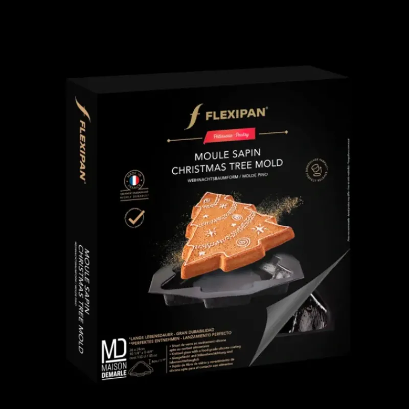 Grâce au moule sapin Flexipan Demarle, même votre repas sera décoré pour Noël. Que ce soit pour des préparations salées, sucrées, prises au froid, ou cuites au four, ce moule en silicone vous assure un résultat d’exception. Confectionné en France à partir de tricot de verre et de silicone de haute qualité, le moule en forme de sapin réunit souplesse et robustesse.