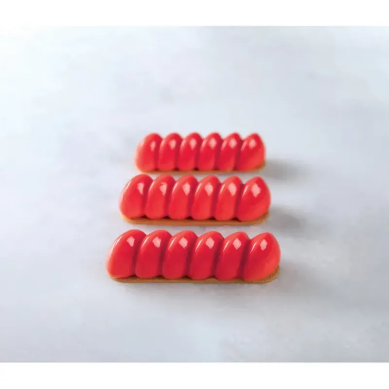 Préparez de délicieux entremets au design original et élégant avec le Moule Silicone Pavoflex. Chacun de vos entremets prendra la forme d’un alignement de quenelle parfait qui mesurera 12,6 x 3,3 cm. Comprenant 14 empreintes, ce Moule Silicone Domino vous offrira un excellent rendement grâce à un démoulage sans accrochage et rapide.