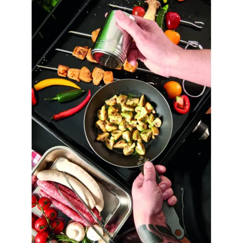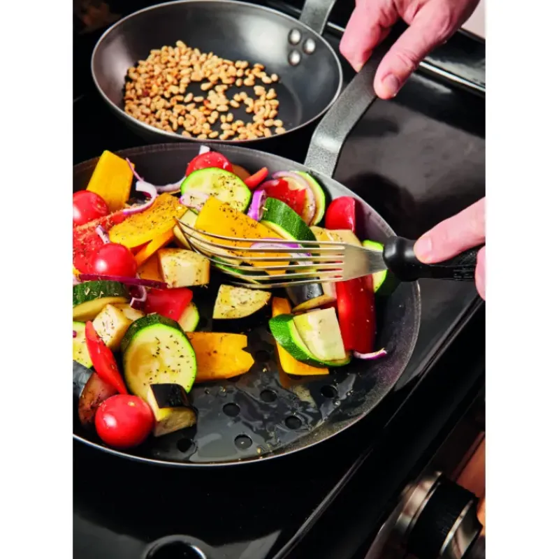 Compatible tous feux, y compris induction après un bon culottage et une montée en température progressive, cette Poêle Tôle d’Acier Bleue Ø 32 cm a été pensée pour une utilisation tout terrain. Ainsi cette Poêle à Frire naturellement anti adhérente grâce au carbone sera idéale pour vos soirées d’été et vos repas en plein air !
