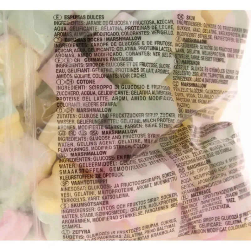 - Conditionnement : sachet de 125 guimauve assorties