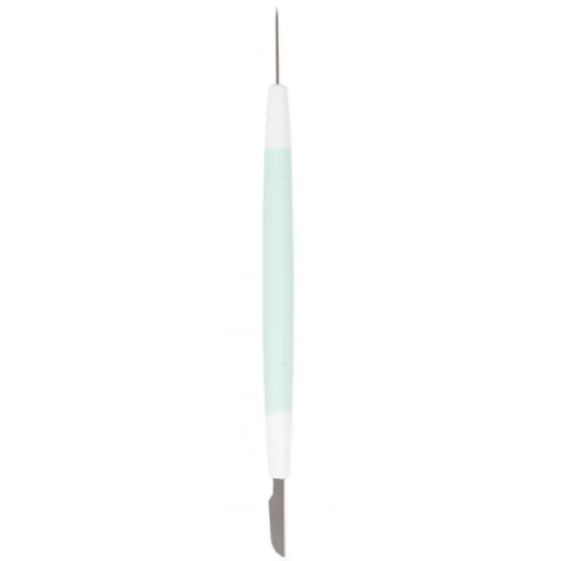 Multifonctions grâce à ses deux faces différentes, cette aiguille pâtisserie est idéale pour la décoration de vos gâteaux, biscuits et autres sucreries. Fabriquée en inox, cette aiguille à sucre pour glaçage vous permettra de lisser ce dernier sur la surface de vos biscuits, d’y dessiner les motifs de votre inspiration ou encore de remplir les coins difficiles d’accès sans risquer que votre glaçage ne déborde. La deuxième partie de cet outil de modelage n’est autre qu’une lame, parfaite pour découper votre pâte à sucre ou encore pour creuser des motifs et ainsi donner du relief à vos pâtisseries.