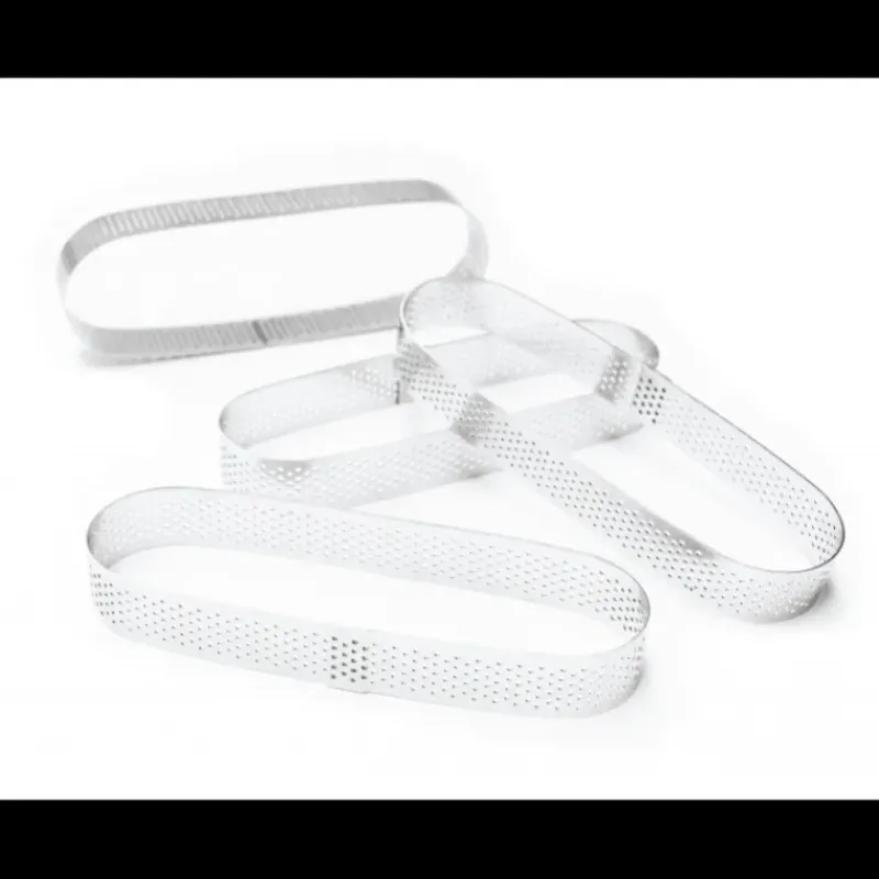 Confectionnez de délicieuses tartelettes dans un format original avec ces Cercles à Tarte Individuels Perforés Eclair 15 x 4 cm (x4) Scrapcooking.