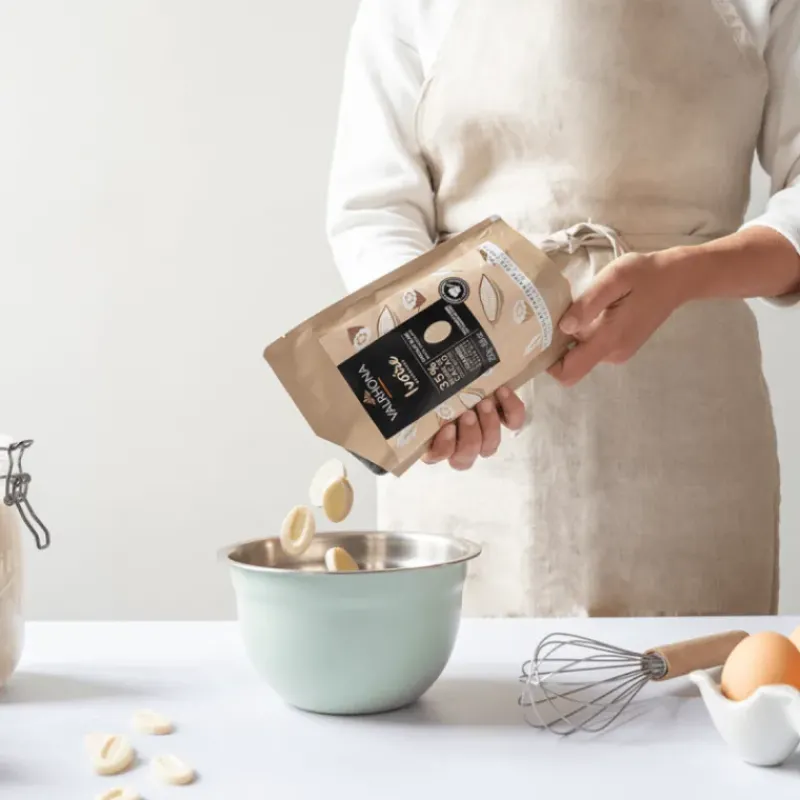 Si vous faites partie des amateurs de chocolat blanc, vous aimerez alors son goût unique aux notes réconfortantes de lait chaud réhaussées de vanille ! Un véritable délice pour les papilles qui vous donnera sans doute l’envie de pâtisser fréquemment ! En plus de ces moments de bonheur qui vous attendent avec ses fèves « Ivoire », choisir la marque Valrhona vous permet de participer également au bonheur des autres puisque la marque est engagée et construit au quotidien une filière cacao plus juste et des partenariats à long terme avec ses producteurs de cacao. Valrhona agit aussi pour un monde meilleur en luttant activement contre le réchauffement climatique (Certifiée du Label B Corp) !