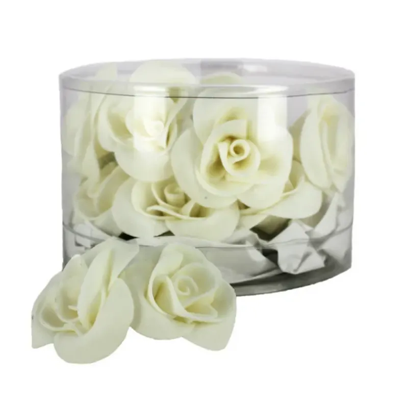Décorez un gâteau de printemps, de baptême, de mariage ou encore d’anniversaire avec de belles Roses Blanches de 3.5 cm d’envergure. Vendu par lot de 15, vous pourrez en disposez plusieurs pour mettre en valeur votre gâteau voir le recouvrir, ou alors pour les disposer sur petits cupcakes.
