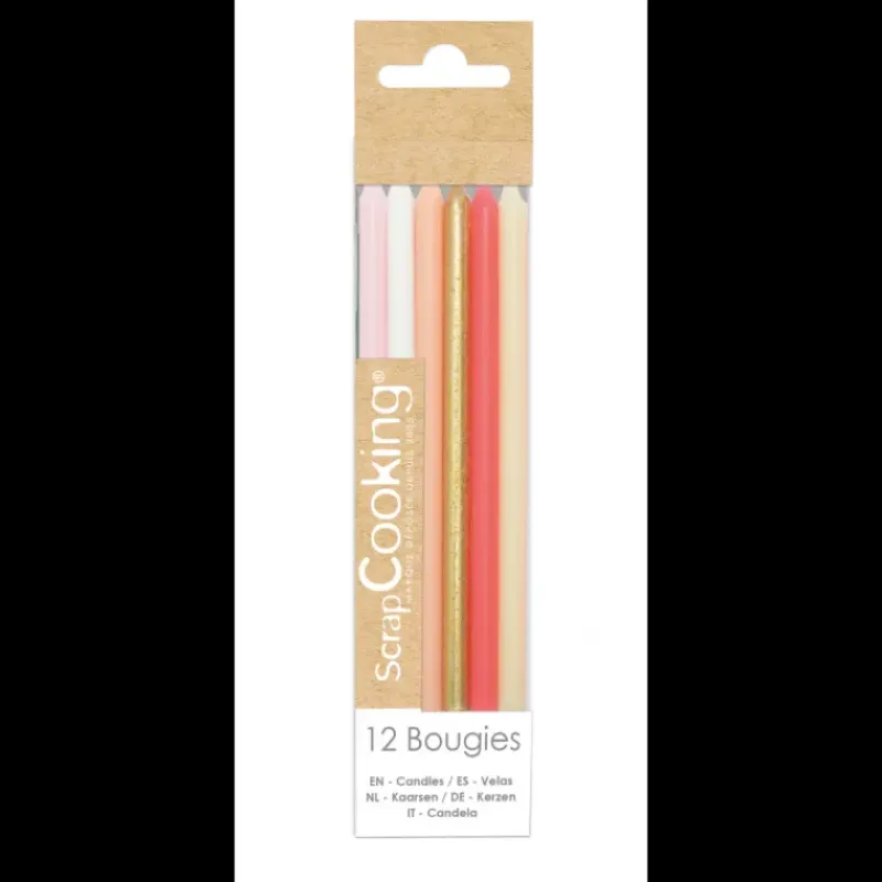 Bougies Longues Rose et Or 12 cm (x12) Scrapcooking