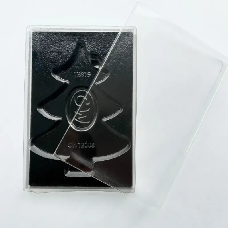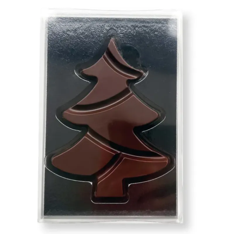 Les dimensions des boîtes (17,6 x 11,7 cm) assurent une parfaite présentation, tandis que le support en forme de sapin (14 x 10,3 cm) s’adapte aux tablettes chocolat avec précision. Ce blister transparent offre une visibilité optimale, parfait pour vos ventes ou cadeaux.