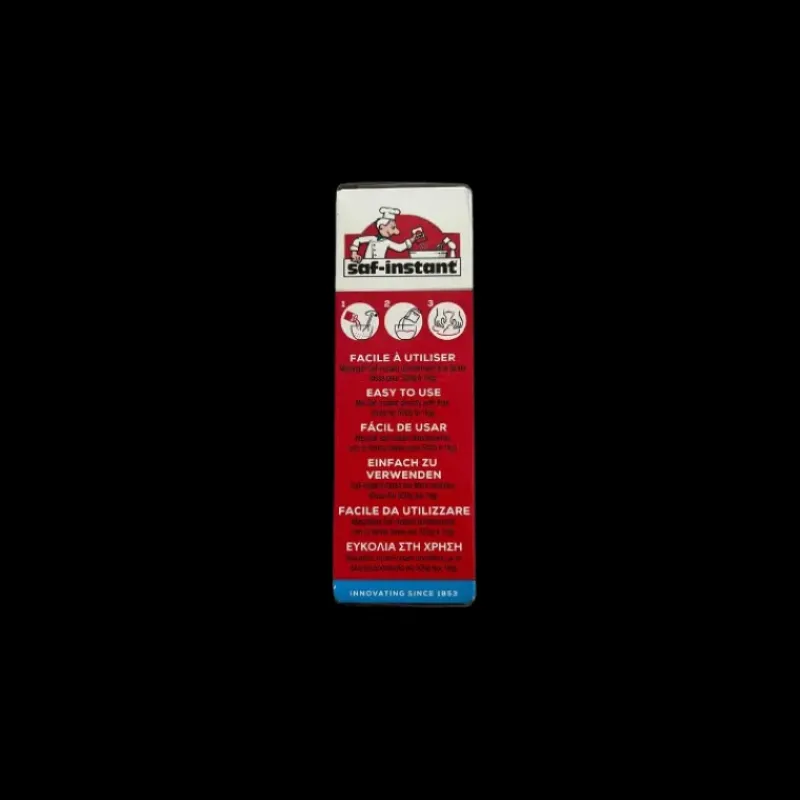 Mode d’emploi : la levure sèche est à ajouter directement à la farine. 1 sachet pour 500g à 1kg de farine (variable selon les recettes)