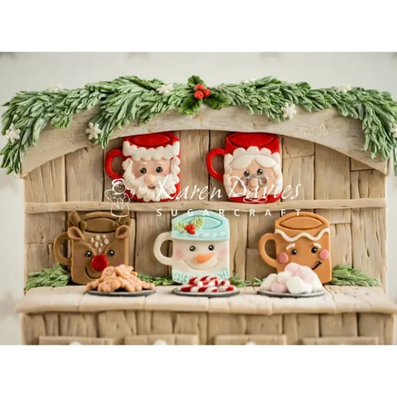 Ce moule en silicone vous permet de réaliser facilement des biscuits, des chocolats ou modeler des décorations en isomalt, pâtes à sucre ou amande en forme de Tasses Festives reflétant les emblématiques personnages de Noël: le Père-Noël, la Mère-Noël, le Renne, le Bonhomme de Neige et le délicieux Bonhomme Pain d’Épices.