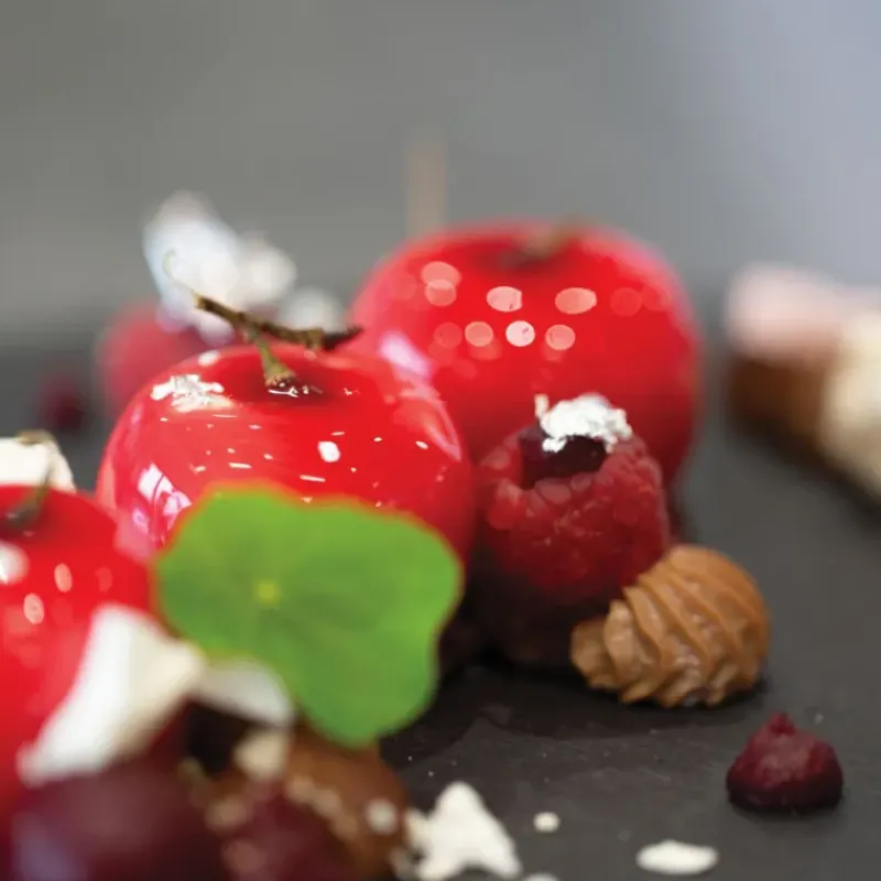 Gâtez vos amis et votre famille en leur rapportant un panier rempli de leur fruit préféré : la pomme ! Aussi gourmandes que celles que l’on voit dans les fêtes foraines ou sur les étalages des marchés, ces pommes, une fois croquées les laisseront sans voix ! En effet, vous êtes devenu un professionnel de l’illusion et c’est grâce au moule pomme de chez Silikomart que vous avez pu réaliser des pommes aussi belles que délicieuses. A l’intérieur de ces trésors culinaires se cache une mousse, un crémeux ou encore un coeur coulant de chocolat !