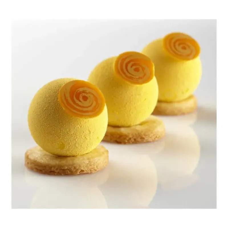 L’ordinaire s’élève vers l’extraordinaire avec la magie de la pâtisserie, une alchimie qui opère à chaque instant avec ce moule design exceptionnel. Chaque sphère crée à l’aide de ce moule silicone, offrira une expérience gustative qui envoûtera tous les palais.