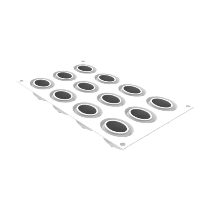 Avec ses 12 empreintes identiques au design ovale et futuriste, ce moule en silicone vous offre la possibilité de réaliser des douceurs uniques qui surprendront et émerveilleront à coup sûr. Fabriqué en silicone lui garantissant un démoulage facile et des créations impeccables, ce moule Silikomart est de véritable qualité professionnelle.