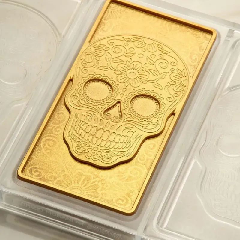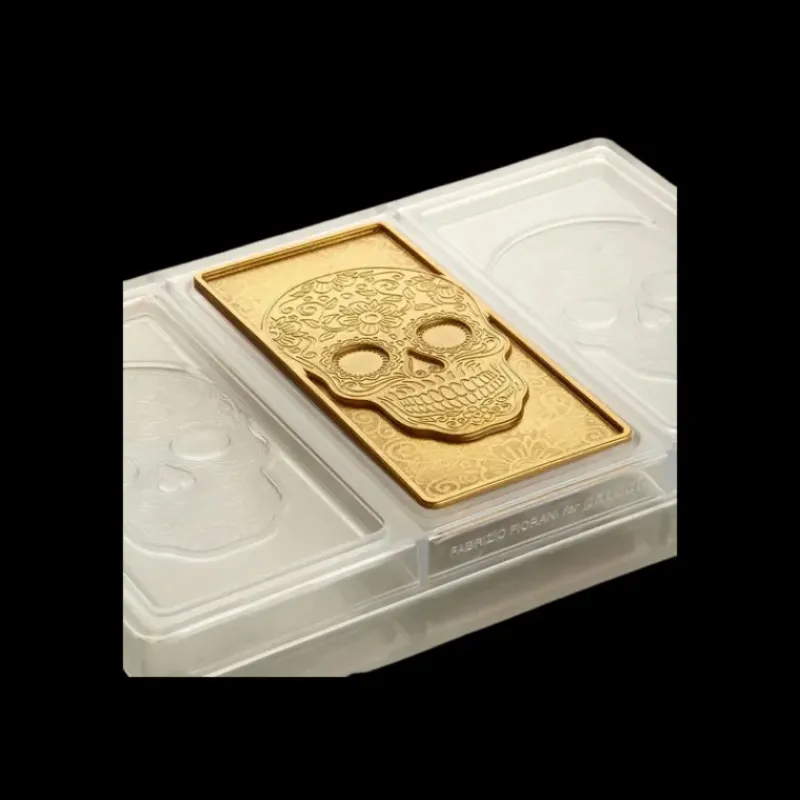 Découvrez le Moule Tablette Chocolat Tête de Mort 15,4 x 7,7 cm Pavoni, un ustensile incontournable pour les amateurs de chocolat et de pâtisserie.