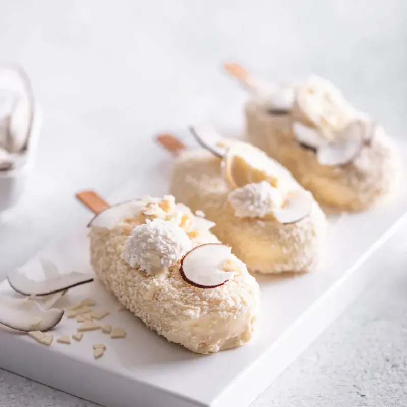 Composée de noix de coco séchée, d’amandes et d’arômes naturels, le glaçage noix de coco est parfait pour le nappage de vos préparations.