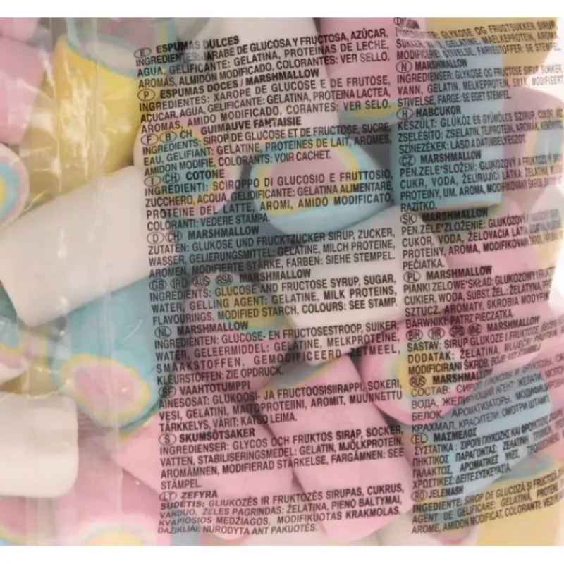 - Conditionnement : sachet de 1kg de guimauve assorties