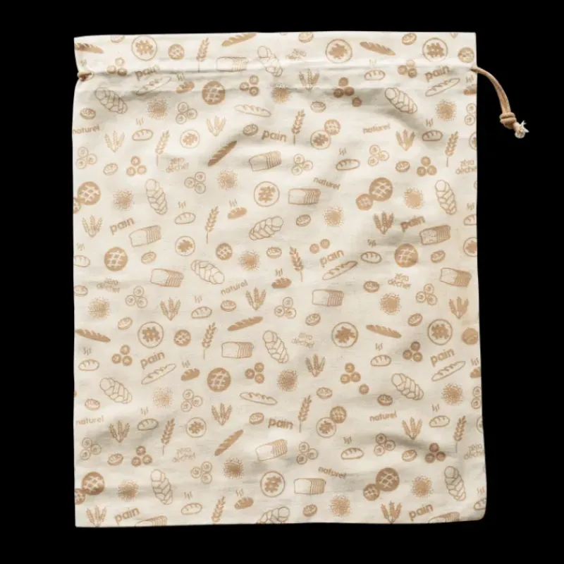 D’une dimension de 50 cm de long sur 45 cm de large, ce sac à pain dispose d’un cordon de serrage afin de garder vos aliments à l’abri de l’air et de l’humidité. Léger et résistant, ce sac réutilisable est lavable à la main en dessous de 30°C. Proposé dans un design naturel avec des motifs liés au thème du pain ce sac en coton est une parfaite alternative écologique aux sac en plastique.