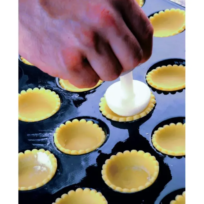 Amusez vous à foncer vos tartelettes unies et les barquettes Flexipan ! Cette outils de fonçage à deux têtes a spécialement été conçu pour les tartelettes unies Flexipan (Ø 4,2 et 4,8 cm) et les barquettes flexipan, Exopan ou Exal (barquettes L65mm).